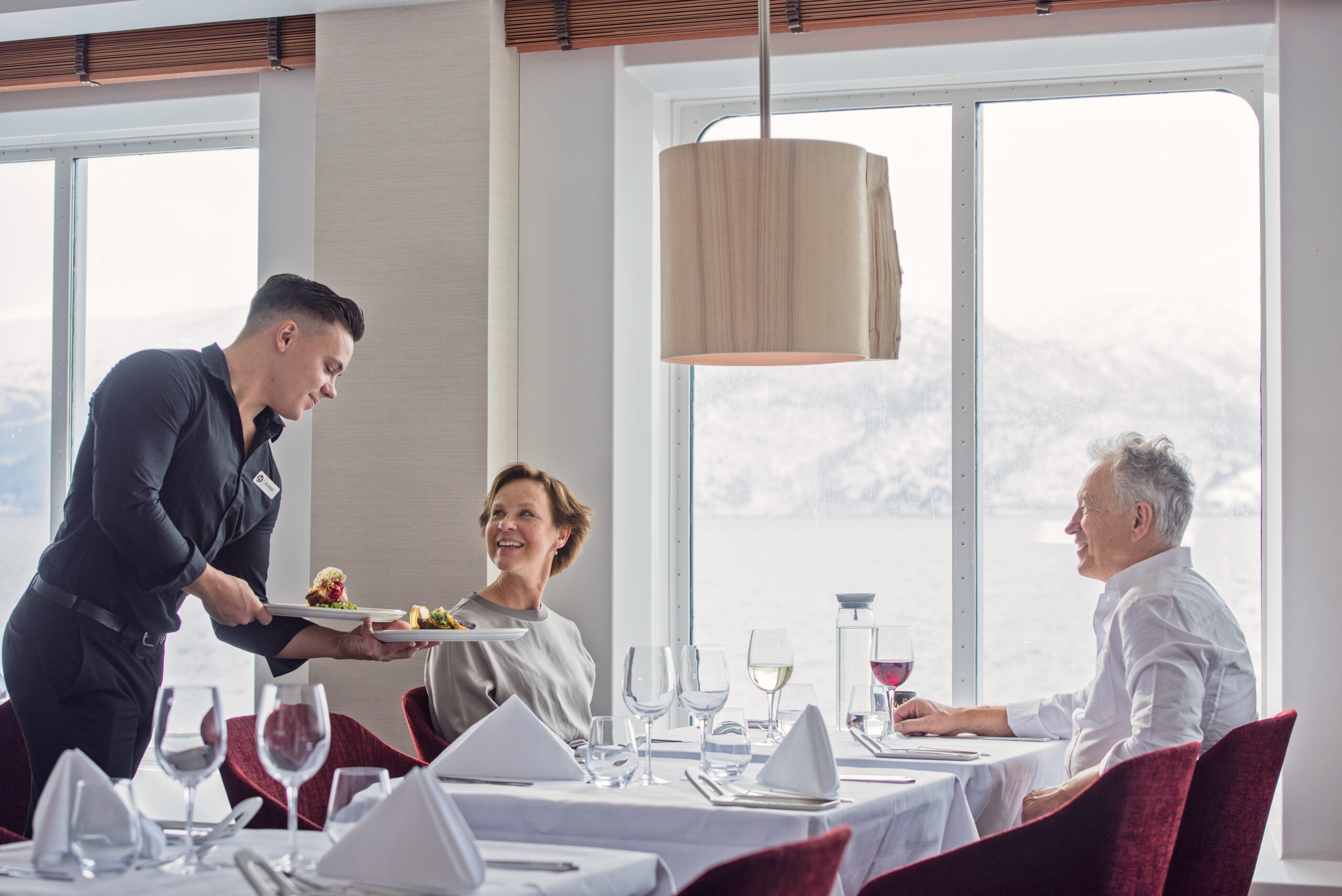 Utvendig lugar med vindu: Hyggelige lugarer med havutsikt — en flott måte å våkne opp til norsk kystlandskap. Finnes på flere dekk.