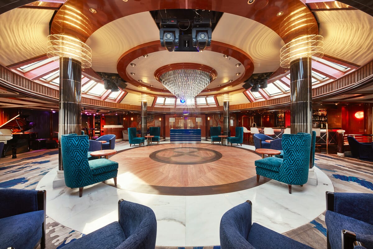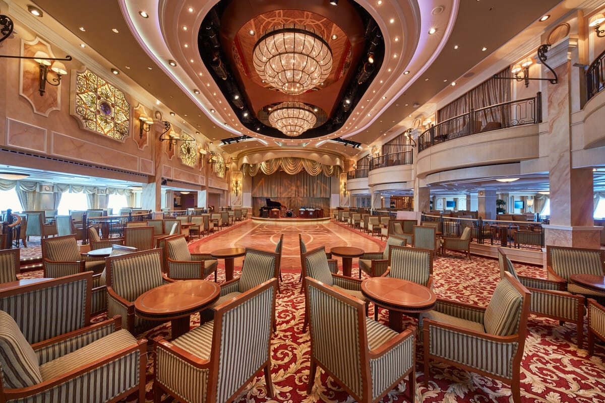 Underholdningen om bord er både variert og eksklusiv. Royal Court Theatre, et imponerende teater over tre etasjer med plass til 830 gjester, tilbyr enestående forestillinger og har private teaterbokser – en verdensnyhet da skipet ble sjøsatt. Queen's Room fungerer som et elegant ballroom hvor det arrangeres dans, konserter og tradisjonell ettermiddagste. I tillegg finner man Commodore Club, Hemispheres nattklubb, Chart Room og Golden Lion Pub – alle med levende musikk, quiz, DJ-er og klassisk barstemning. For de som ønsker å lære noe nytt, tilbys det også foredrag og temakvelder under programmet Insight Talks.