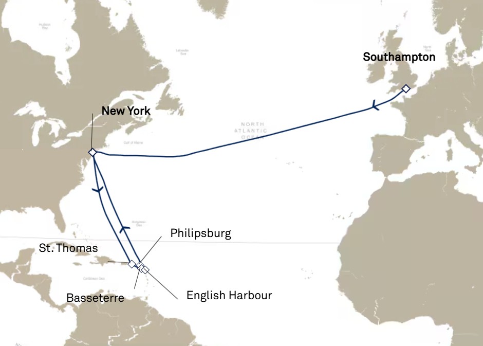 Reisen starter med en klassisk transatlantisk kryssing – en unik opplevelse med seks rolige dager til havs, hvor du virkelig får kjenne på roen, rytmen og luksusen til sjøs. Når skipet legger til kai i New York City, har du mulighet til å utforske verdensmetropolen med sine ikoniske skyline, Central Park og Broadway-stemning.