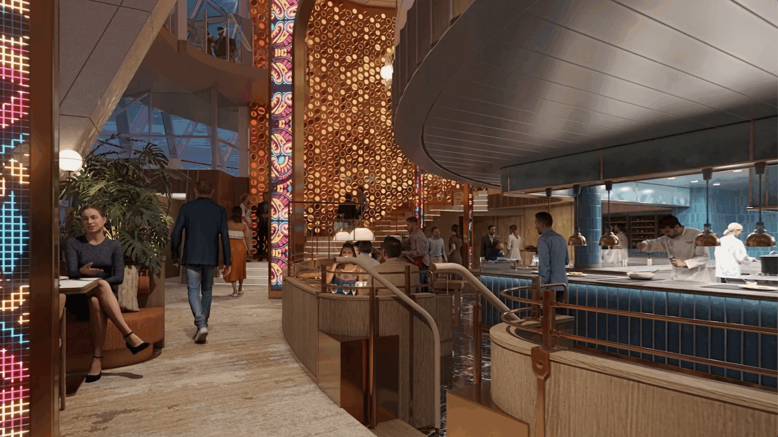 Dette er noen av høydepunktene: Flere restauranter inkludert hovedrestauranter, buffétrestauranten Oceanview Café, spesialrestauranter som Rooftop Garden Grill etc. Eksklusivt gjesteområde for gjester i suiteavdelingen The Retreat, med egen restaurant , The Retreat Lounge og sundeck med grill. Muligheter for spesialmiddager, lokale smaker og matopplevelser i The Bazaar. Masse barer med topp stemning ombord.