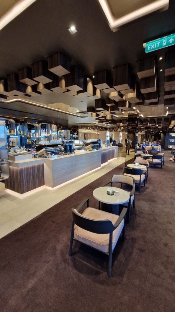 6 restauranter ombord; Sakura (pan–asiatisk), Anthology (italiensk), Marble & Co. Grill (biff), Fil Rouge (fransk) og Med Yacht Club Inklusiv opplevelse: alle restauranter (9 kulinariske opplevelser) inkludert i prisen, samt in‑suite dining 12 bar- og loungeområder: fra Crema Café til Sky Bar og Gelateria, med utsikt og variasjon for alle stemninger