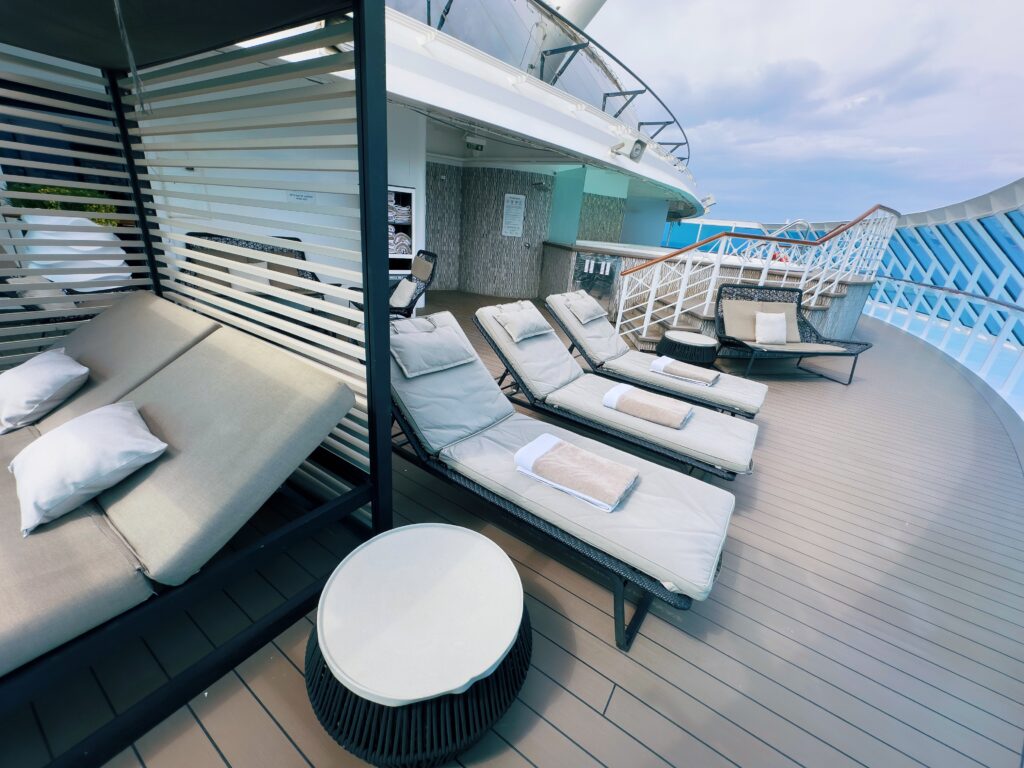 Balkonglugarer: Komfortable lugarer med dobbeltseng eller to separate senger etter eget ønske. Balkong med sittegruppe.