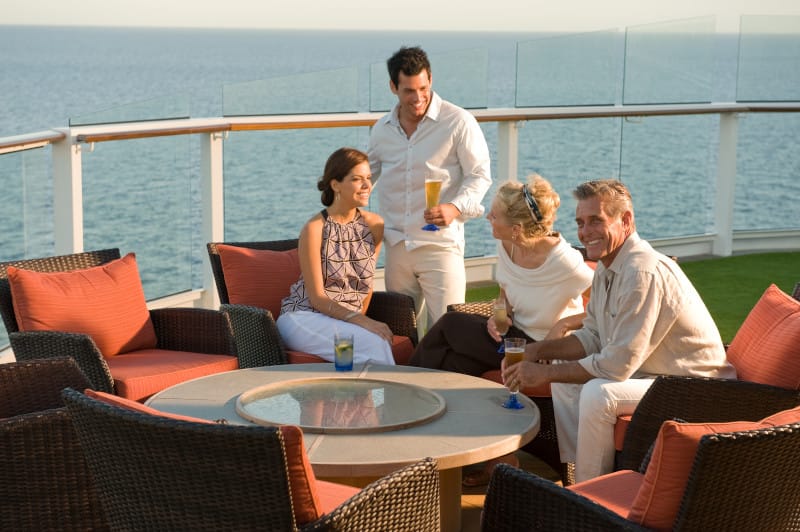 Glassblåseverksted – skreddersydd suvenir fra cruise. Storslått utendørs bassengområde med solstoler, Mast Grill og solarium. Utendørssport på Lawn Club: boccia, croquet og piknik. Moderne treningssenter med daglige gruppetimer og SPA‑persisk hage