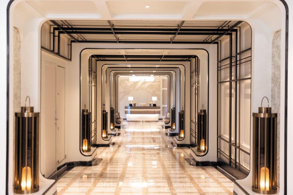 Regent Suite – flaggskipet blant lugarene (opp til 274 m²), walk-in-garderobe, wrap-around balkong og personlig bar