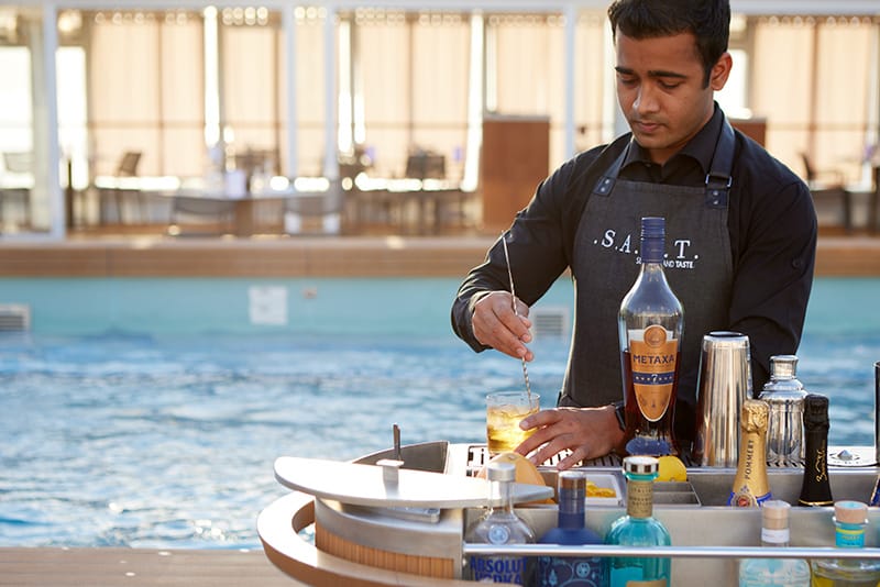 Åtte restauranter tilbyr alt fra japansk Kaiseki og fransk haute cuisine i La Dame til sjømat i Atlantide, italiensk eleganse i Spaccanapoli og buffet-lunsj i La Terrazza. S.A.L.T. Kitchen gir daglige, destinasjonsinspirerte menyer – alt inkludert i prisen. 24 timers roomservice med stort utvalg.