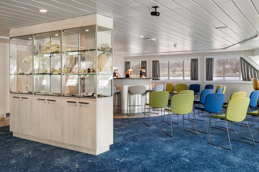 Science Centre & eksplorasjonsteam: Teknologi og forskerforedrag om klima, geologi og dyreliv danner et “universitet til sjøs” . Explorer Lounge & Bar: Panoramautsikt, vitenskapelige foredrag og uformelle samlinger med global utsikt. Daglige foredrag og “live points of interest”: Øk din natur- og kulturforståelse, både innendørs og ute på dekk .